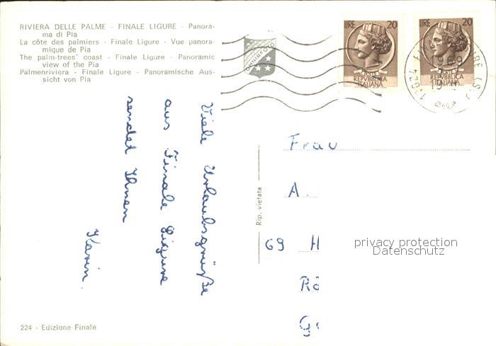 old postcard Finale Ligure Panorama di Pia postalisch gelaufen Erhaltung siehe scans