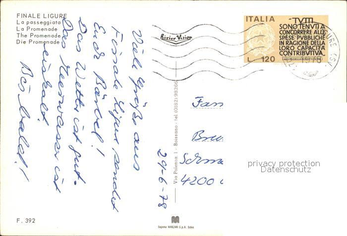 old postcard Finale Ligure Promenade postalisch gelaufen Erhaltung siehe scans