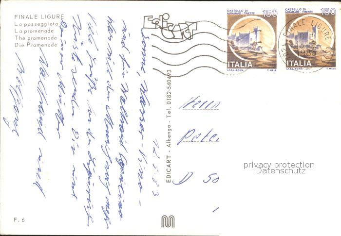 old postcard Finale Ligure Promenade postalisch gelaufen Erhaltung siehe scans