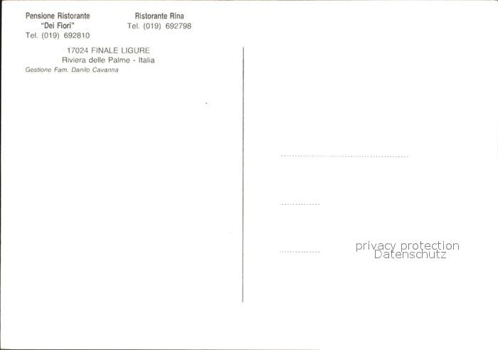 Finale Ligure Ristorante Dei Fiori und Ristorante Rina Strandpartie postalisch nicht gelaufen Erhaltung siehe scans