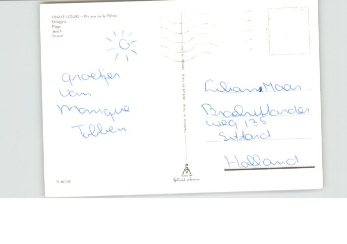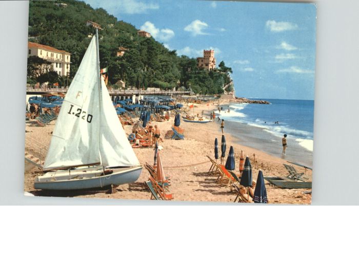 old postcard Finale Ligure Riviera delle Palme Spiaggia Plage Strand postalisch gelaufen