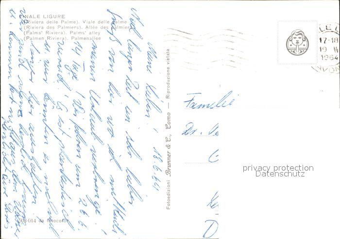 old postcard Finale Ligure Riviera delle Palme viale delle Palme postalisch gelaufen Erhaltung siehe scans
