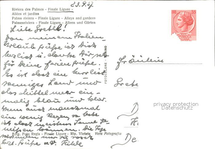 old postcard Finale Ligure Riviera delle Palme Viali e giardini postalisch gelaufen Erhaltung siehe scans