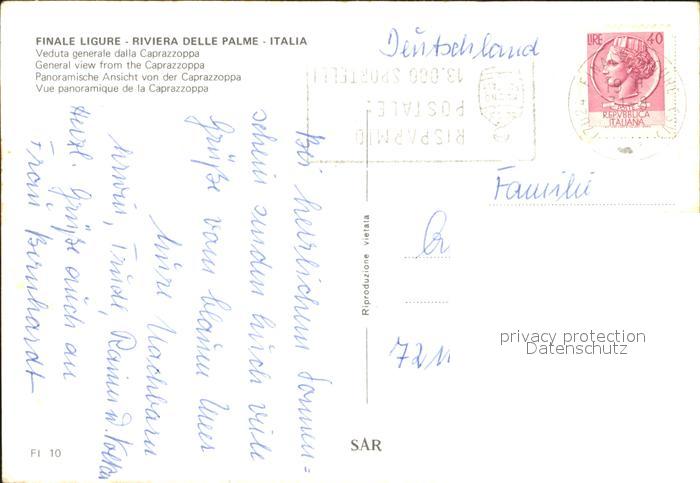 old postcard Finale Ligure Riviera Palme Panorama Caprazzoppa postalisch gelaufen Erhaltung siehe scans