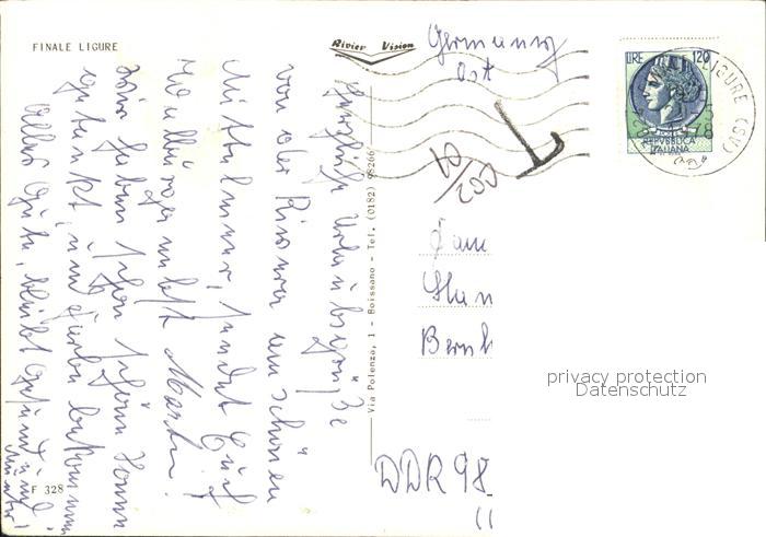old postcard Finale Ligure Spiaggia Il Porto Castello Park postalisch gelaufen Erhaltung siehe scans