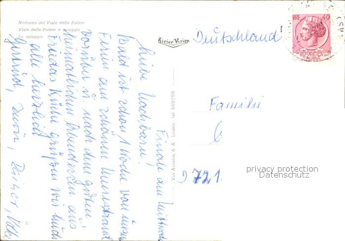 old postcard Finale Ligure Strand Palmen Nachtaufnahme postalisch gelaufen Erhaltung siehe scans