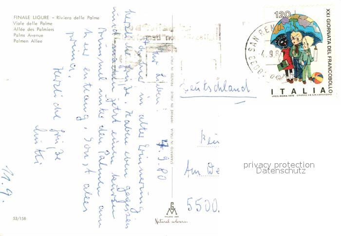 old postcard Finale Ligure Viale delle Palme postalisch gelaufen Erhaltung siehe scans [FriedD77]