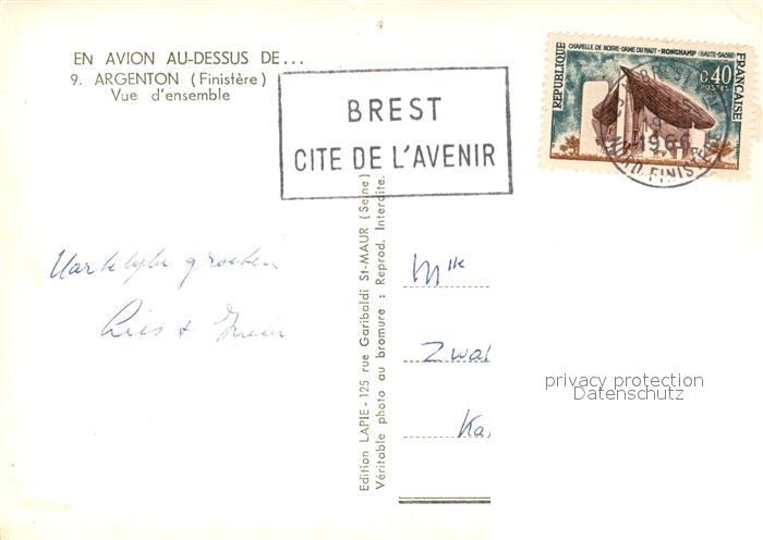 13153852 carte postale Finistere Region Argenton Fliegeraufnahme postalisch gelaufen Erhaltung siehe scans [KathaD81] KatCode: 11170029429232