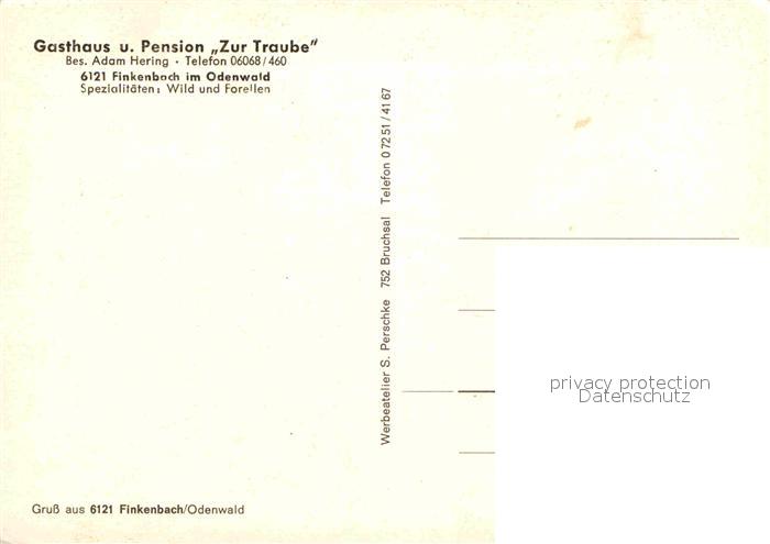 72818616 Finkenbach Odenwald Gasthaus Zur Traube postalisch nicht gelaufen Erhaltung siehe scans [NatalD47] KatCode: 11110006437014