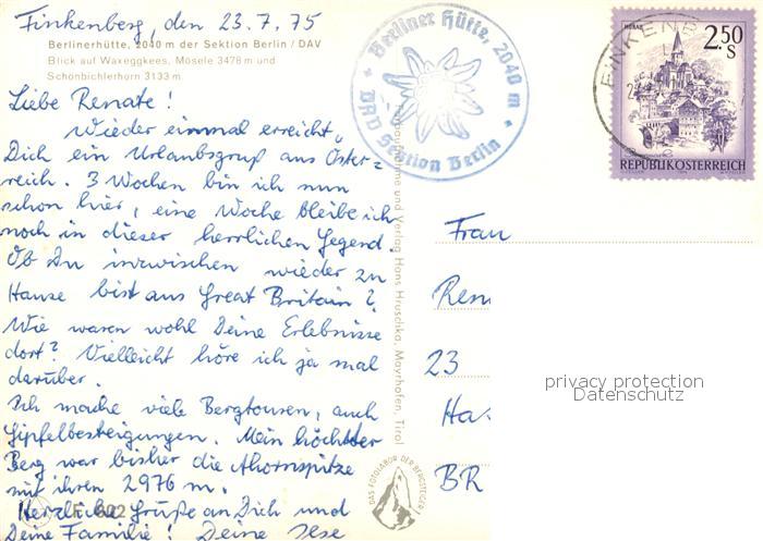 73164786 alte Postkarte Finkenberg Tirol Berlinerhuette Waxeggkees Moesele postalisch gelaufen Erhaltung siehe scans [NatalD47] KatCode: 11390335070908