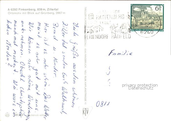 72497684 alte Postkarte Finkenberg Tirol Blick zum Gruenberg postalisch gelaufen Erhaltung siehe scans KatCode: 11390335070908