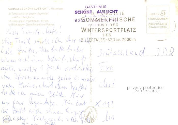 72942764 alte Postkarte Finkenberg Tirol Gasthaus Schoene Aussicht postalisch gelaufen Erhaltung siehe scans [PaolaD17] KatCode: 11390335070908
