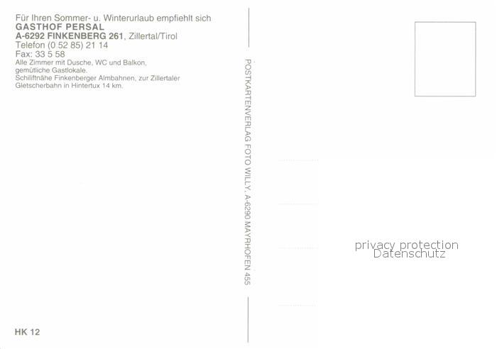 12637355 Finkenberg Tirol Gasthof Persal postalisch nicht gelaufen Erhaltung siehe scans [LiesaD40] KatCode: 11390335070908