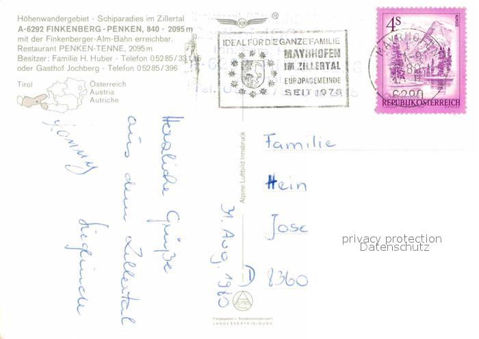 72653609 alte Postkarte Finkenberg Tirol Hoehenwandergebiet Finkenberg Penken Bergrestaurant Fliegeraufnahme postalisch gelaufen Erhaltung siehe scans [FriedD77] KatCode: 11390335070908