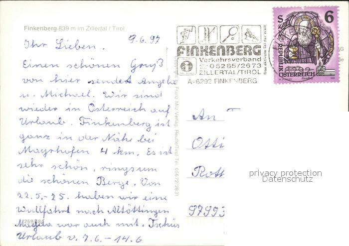 72497155 alte Postkarte Finkenberg Tirol Kirche Musikkapelle Panorama postalisch gelaufen Erhaltung siehe scans KatCode: 11390335070908