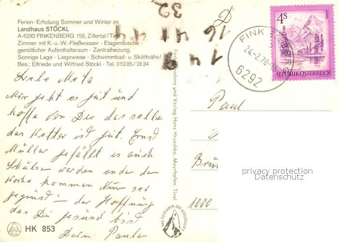 73363332 alte Postkarte Finkenberg Tirol Landhaus Stoeckl Zillertal Zillertaler Alpen postalisch gelaufen Erhaltung siehe scans [FriedD77] KatCode: 11390335070908