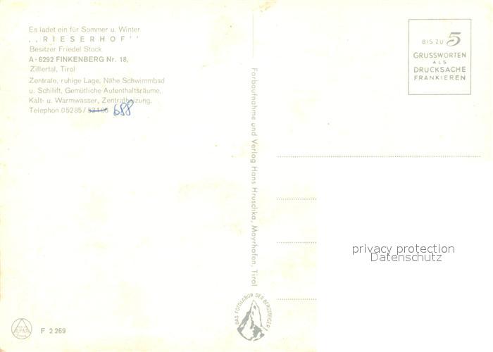 13212938 Finkenberg Tirol Rieserhof Pension postalisch nicht gelaufen Erhaltung siehe scans [LiesaD40] KatCode: 11390335070908