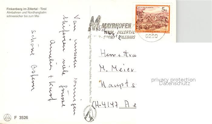 73305107 alte Postkarte Finkenberg Tirol Skigebiet Zillertal postalisch gelaufen Erhaltung siehe scans [KathaD81] KatCode: 11390335070908
