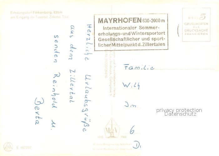 73162075 alte Postkarte Finkenberg Tirol postalisch gelaufen Erhaltung siehe scans [PaolaD17] KatCode: 11390335070908