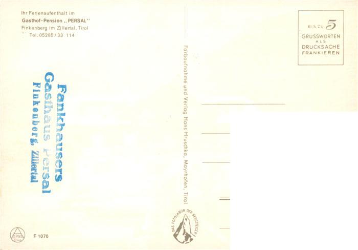 73880478 Finkenberg Zillertal Tirol AT Gasthof Pension Persal postalisch nicht gelaufen Erhaltung siehe scans [WerneD78] KatCode: 11390335070908