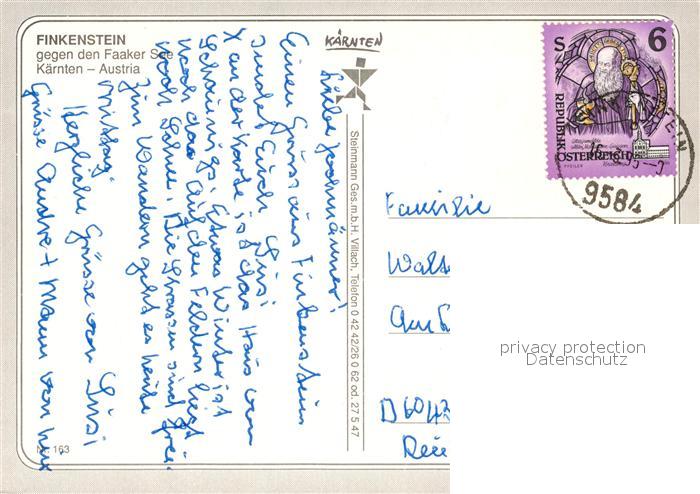 13237462 alte Postkarte Finkenstein Faaker See Fliegeraufnahme postalisch gelaufen Erhaltung siehe scans [FriedD77] KatCode: 11390211020711