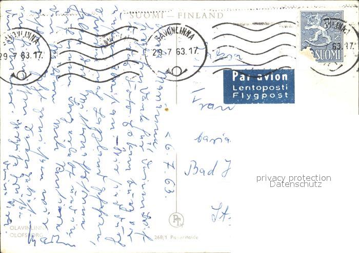 old postcard Finnland Suomi Olofsborg postalisch gelaufen Erhaltung siehe scans