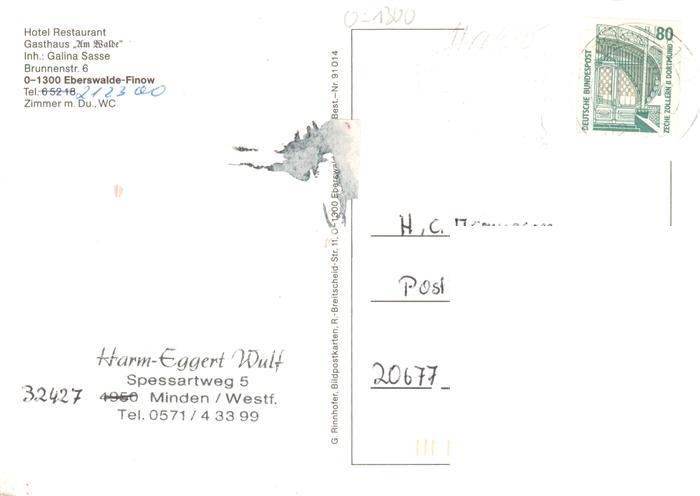 73946844 alte Postkarte Finow Eberswalde Hotel Restaurant Gasthaus Am Walde postalisch gelaufen Erhaltung siehe scans [WerneD78] KatCode: 11110012060052