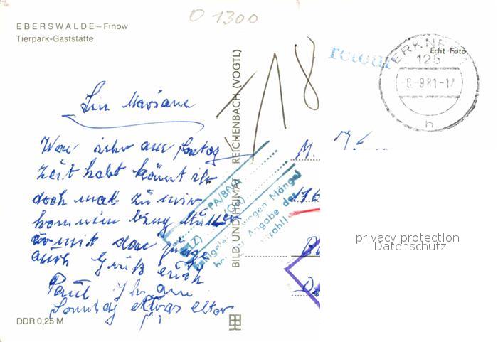72898610 alte Postkarte Finow Eberswalde Tierpark-Gaststaette postalisch gelaufen Erhaltung siehe scans [PaolaD17] KatCode: 11110012060052