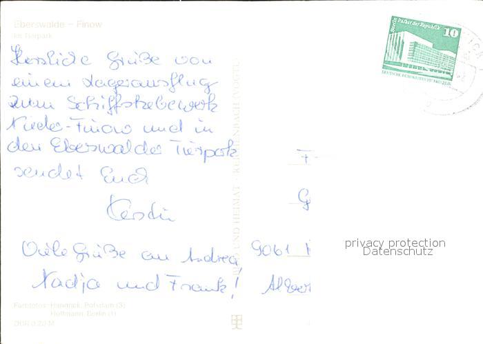 72229359 alte Postkarte Finow Eberswalde Tierpark postalisch gelaufen Erhaltung siehe scans KatCode: 11110012060052