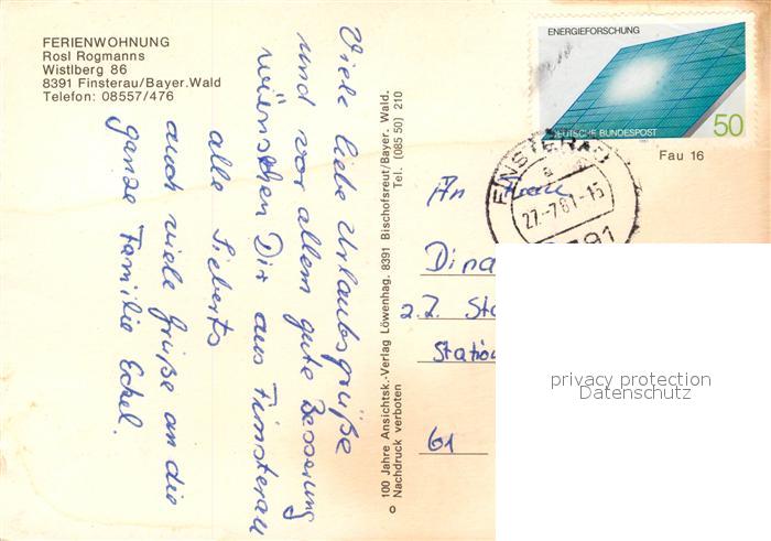 73249759 alte Postkarte Finsterau Bayerischer Wald Panorama Ferienwohnung Rosl Rogmanns Baer Skikurs postalisch gelaufen Erhaltung siehe scans [WerneD78] KatCode: 11110009272134