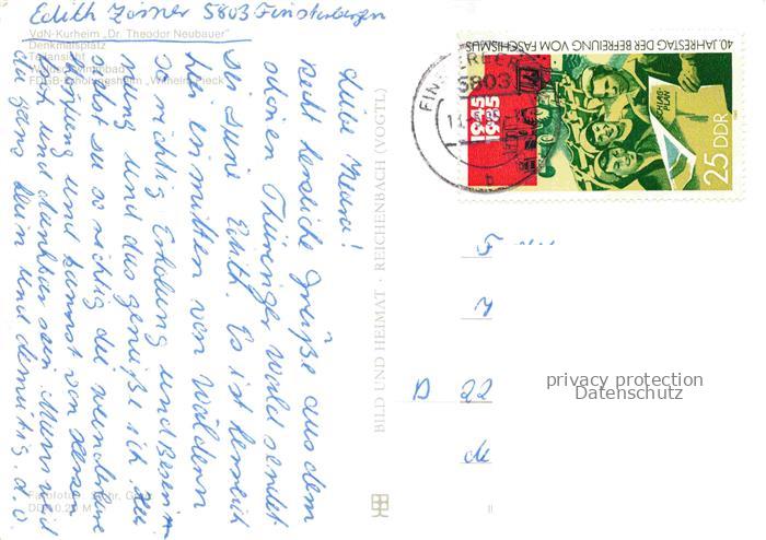 74150742 alte Postkarte Finsterbergen Bad Gotha Thueringen VdN Kurheim Theo Neubauer Denkmalplatz Panorama Waldschwimmbad FDGB Erholungsheim Wilhelm Pieck postalisch gelaufen Erhaltung siehe scans [WerneD78] KatCode: 11110016067017