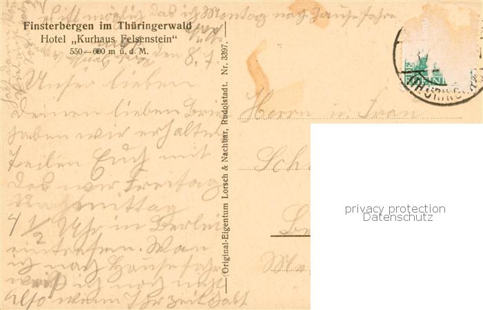 73820306 alte Postkarte Finsterbergen Bad Hotel Kurhaus Felsenstein postalisch gelaufen Erhaltung siehe scans [FriedD77] KatCode: 11110016067017
