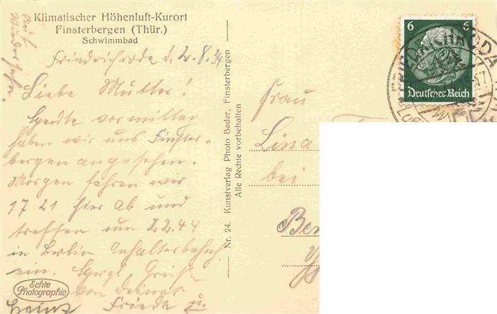 73974661 alte Postkarte Finsterbergen Bad Schwimmbad postalisch gelaufen Erhaltung siehe scans [FriedD77] KatCode: 11110016067017