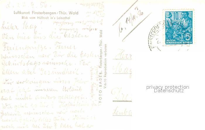 72632716 alte Postkarte Finsterbergen Blick vom Huellrodt ins Leinathal postalisch gelaufen Erhaltung siehe scans [FriedD77] KatCode: 11110016067017