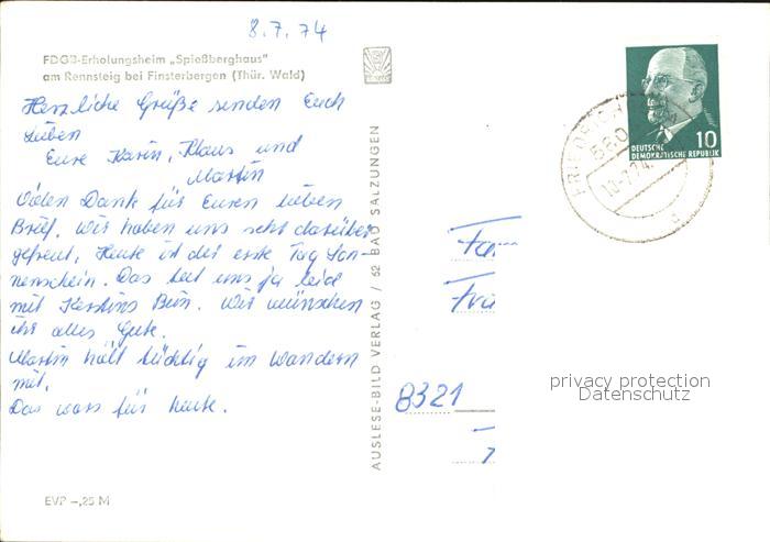 72399767 alte Postkarte Finsterbergen Erholungsheim Spiessberghaus am Rennsteig postalisch gelaufen Erhaltung siehe scans KatCode: 11110016067017