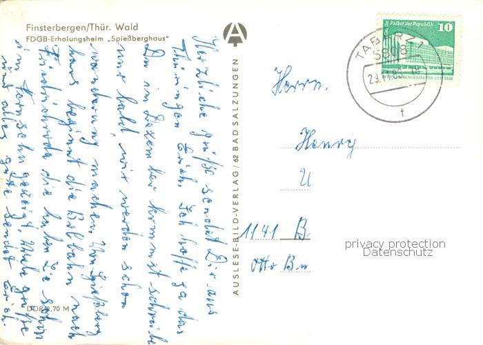 73750793 alte Postkarte Finsterbergen FDGB Erholungsheim Spiessberghaus postalisch gelaufen Erhaltung siehe scans [WerneD78] KatCode: 11110016067017