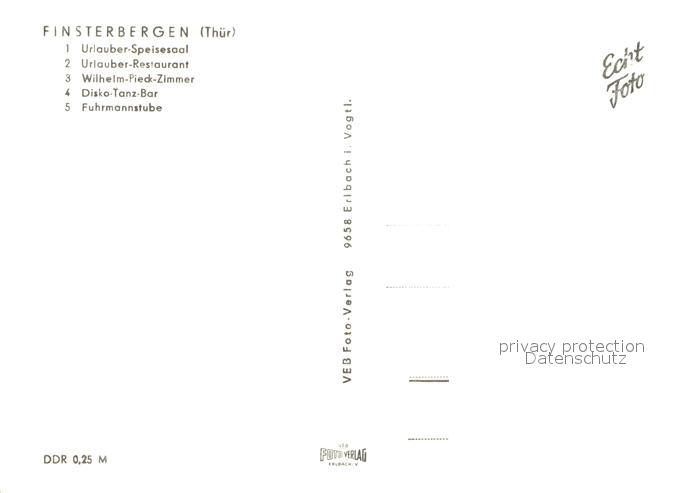 73616703 Finsterbergen FDGB Erholungsheim Wilhelm Pieck Speisesaal Restaurant Zimmer Disco Tanzbar Fuhrmannstube postalisch nicht gelaufen Erhaltung siehe scans [WerneD78] KatCode: 11110016067017