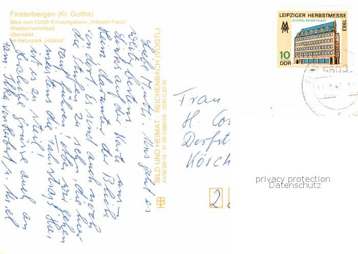 72697450 alte Postkarte Finsterbergen FDGB Erholungsheim Wilhelm Pieck Waldschwimmbad Naturpark Huellrod postalisch gelaufen Erhaltung siehe scans [WerneD78] KatCode: 11110016067017