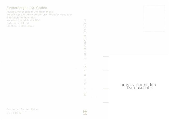 72617237 Finsterbergen FDGB Erholungsheim Wilhelm Pieck Wegweiser Betriebsferienheim Naturpark Huellrod Blockhuette Hainfelsen postalisch nicht gelaufen Erhaltung siehe scans [WerneD78] KatCode: 11110016067017