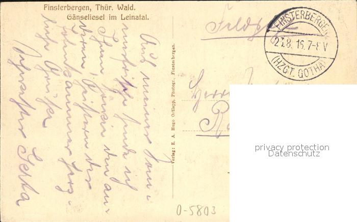 42506033 alte Postkarte Finsterbergen Gaenseliesel im Leinatal postalisch gelaufen Erhaltung siehe scans KatCode: 11110016067017