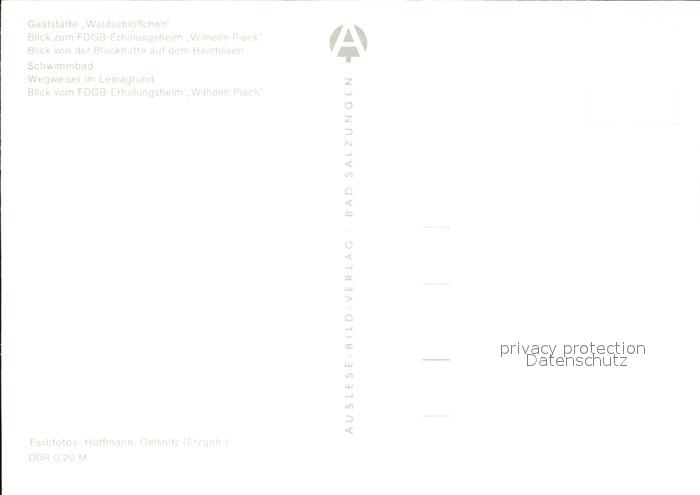 72413936 Finsterbergen Gaststaette Waldschloesschen FDGB Erholungsheim Wilhelm Pieck Blockhuette auf dem Hainfelsen Schwimmbad Wegweiser Leinagrund Panorama postalisch nicht gelaufen Erhaltung siehe scans KatCode: 11110016067017