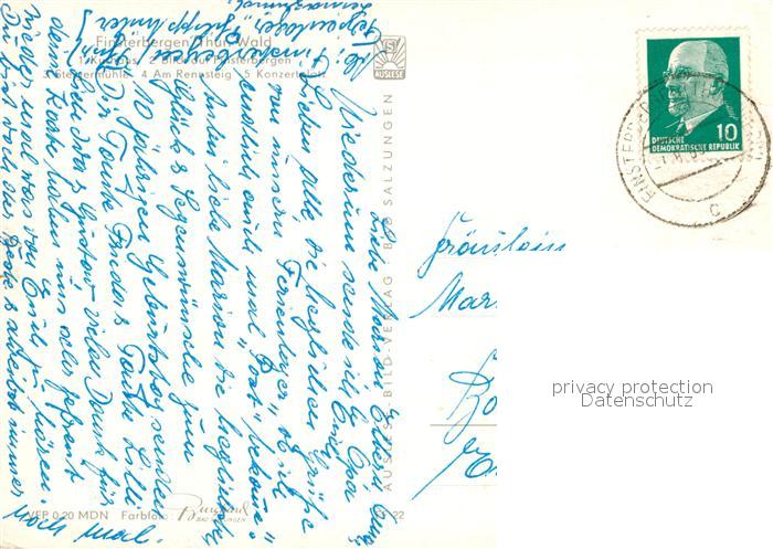 72972924 alte Postkarte Finsterbergen Kurhaus Steigermuehle Rennsteig Konzertplatz postalisch gelaufen Erhaltung siehe scans [FriedD77] KatCode: 11110016067017
