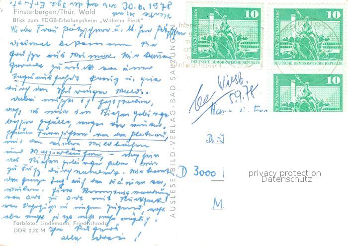 73151763 alte Postkarte Finsterbergen Landschaftspanorama mit FDGB Erholungsheim Wilhelm Pieck postalisch gelaufen Erhaltung siehe scans [FriedD77] KatCode: 11110016067017