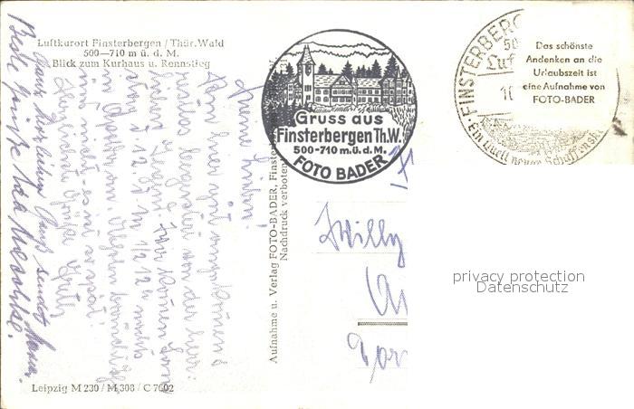 72185318 alte Postkarte Finsterbergen mit Kurhaus postalisch gelaufen Erhaltung siehe scans KatCode: 11110016067017