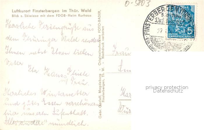 43345487 alte Postkarte Finsterbergen Panorama mit FDGB Heim Kurhaus postalisch gelaufen Erhaltung siehe scans [WerneD78] KatCode: 11110016067017