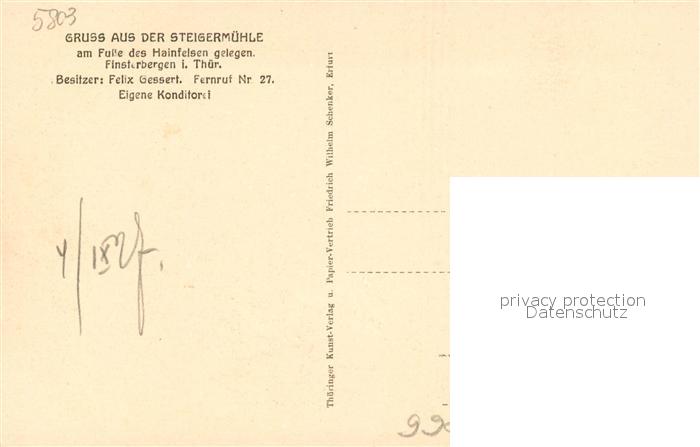 43075326 Finsterbergen Restaurant und Kaffee Steigermuehle postalisch nicht gelaufen Erhaltung siehe scans [FriedD77] KatCode: 11110016067017