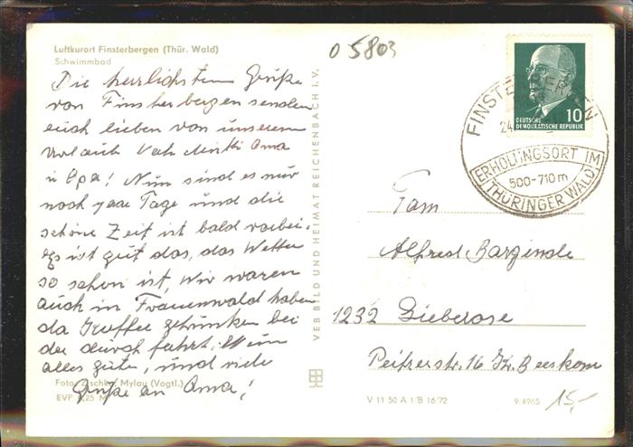 41427673 alte Postkarte Finsterbergen Schwimmbad postalisch gelaufen KatCode: 11110016067017