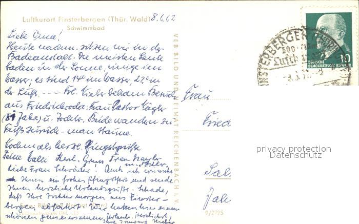 72040344 alte Postkarte Finsterbergen Schwimmbad postalisch gelaufen Erhaltung siehe scans KatCode: 11110016067017