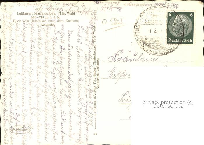 41435320 alte Postkarte Finsterbergen Thueringer Wald postalisch gelaufen Erhaltung siehe scans KatCode: 11110016067017