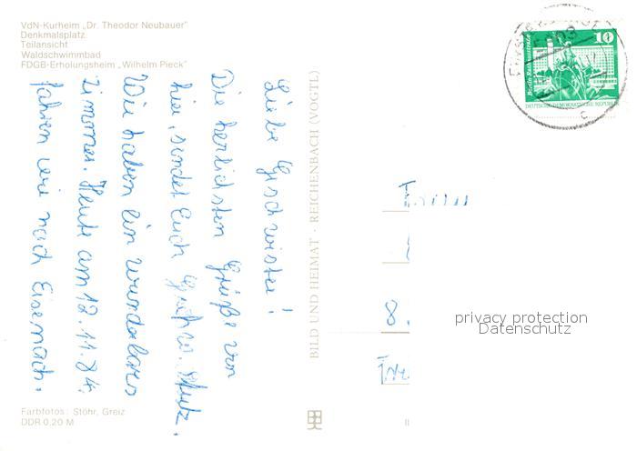 73012061 alte Postkarte Finsterbergen VdN Kurheim Theodor Neubauer Denkmalsplatz Teilansicht Waldschwimmbad FDGB Erholungsheim Wilhelm Pieck postalisch gelaufen Erhaltung siehe scans [WerneD78] KatCode: 11110016067017